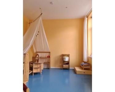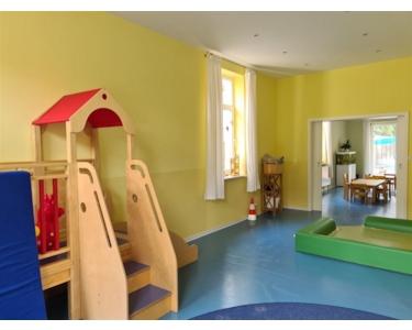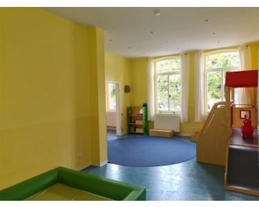 Die Räumlichkeiten der Kinderkrippe umfassen das gesamte Erdgeschoss sowie im Dachgeschoss ein schönes Zimmer, ferner WC und Abstellbereich. Insgesamt verteilen sich ca. 178,45 m² auf 5 Räume, Küche, Garderoben und Flurbereich, Waschraum mit Toiletten und 2 x Personal-WCs.