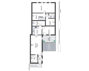 Darüber hinaus befindet sich im Dachgeschoss eine kleine Wohnung mit separatem Zugang, die mit einer Wohnfläche von ca. 48,01 m² über 2 ½ Zimmer, Küche, Duschbad / WC und Dachterrasse verfügt.