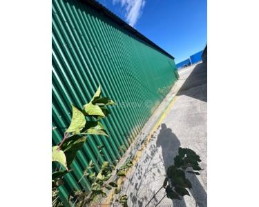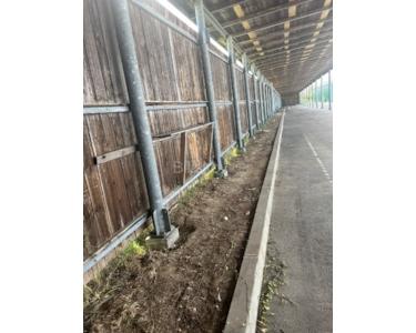 Davon sind 17.501 m² eingezäunt – 11.000 m² sind aufgeschüttet und asphaltiert mit zwei Hallen von je 250 m² und einem Vordach von 500 m², insgesamt 1.000 m² überdachter Lagerfläche plus 11.000 m² Freifläche für Parkplätze und Lagerung von Ausrüstung und Material, das keine Überdachung benötigt.