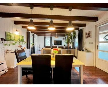 In Szatymazon, nur wenige Minuten von Szeged entfernt, steht dieses 2008 mit moderner Technologie erbaute Holzhaus zum Verkauf und kann ein Zuhause sein, das alle Bedürfnisse jeder Familie erfüllt. Das riesige Wohnzimmer des Hauses ist dank der vielen Glasflächen und der hervorragenden Ausrichtung äußerst hell.