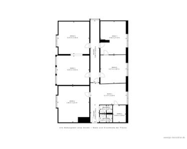 Die ca. 185 qm große Fläche ist in fünf Räume aufgeteilt, die alle über große isolierverglaste Fenster verfügen und somit für ausreichend Tageslicht sorgen. Ein großer Flur bietet Platz für Empfangsbereich und Arbeitsplätze. Die getrennten WC-Bereiche sorgen für eine angenehme Arbeitsumgebung.