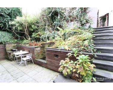 Terrasse: Die ca. 16 m² große Terrasse ist ein privater Rückzugsort mit Brunnen und Wasserfall sowie stimmungsvoller Beleuchtung - ideal zum Entspannen im Freien.
