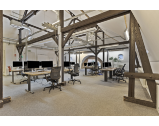 Der großzügige, offene Raum wird durch charmante, freiliegende Holzbalken und eine hohe Decke charakterisiert, die dem Büro eine besondere Atmosphäre verleihen. Ein weiteres Highlight sind die großen Fenster mit schönen Rundbögen, die das Büro in natürliches Licht tauchen und für eine angenehme Helligkeit sorgen. Die moderne Ausstattung, bestehend aus hochwertigen IT-Anschlüssen und Klimatisierung, erfüllt alle Anforderungen an ein zeitgemäßes Arbeitsumfeld. Die raumhohen Decken und offenen Träger betonen den industriellen Charme des Objekts, ohne auf modernen Komfort zu verzichten.