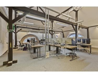 Dank der flexiblen Raumaufteilung lassen sich verschiedene Arbeitsplatzkonzepte realisieren. Ob als Großraumbüro oder in individuellen Zonen, die Gestaltungsmöglichkeiten sind vielfältig. Das Büro ist bereits mit Bodentanks für eine unkomplizierte Anbindung technischer Geräte ausgestattet und bietet somit beste Voraussetzungen für eine moderne Arbeitswelt.