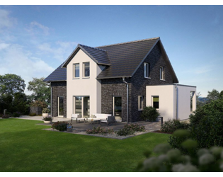 Der Hausentwurf ist im Stil der beliebten Landhausarchitektur geplant. Die Gartenansicht wird von einem Zwerchhaus mit Satteldach geprägt. Weitere Details sind eine Wohnraumerweiterung mit überdachtem Hauseingang. Großzügig und lichtdurchflutet präsentiert sich der Wohn-/Ess- und Kochbereich. Die Grundrissgestaltung bietet einen Windfang mit einem Garderobenbereich, ein Duschbad, eine Diele mit Treppenaufgang und einen Hauswirtschafts-/Haustechnikraum. Besonders praktisch ist ein zusätzlicher Raum, der als Arbeits-, Gäste- oder Schlafzimmer nutzbar ist. Das Wohnen auf einer Etage ist aufgrund der Planung ebenfalls möglich. Der Elternschlafbereich mit Ankleide, 2 Kinderzimmer und ein Familienbad befinden sich im Dachgeschoss des Hauses.
