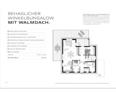 Alles auf einer Ebene === der Traum vieler, die an das Alter denken. Hier gibt es keine Treppen mehr, alles ist auf einer Ebene erreichbar. Es gibt (je nach Wunsch) zwei Varianten: Der Rechteckbungalow und der Winkelbungalow, bei dem eine wind- und sichtgeschützte Terrasse entsteht. Alle hier gezeigten Häuser sind Vorschläge, bei denen Sie den Grundriss nach Ihren Wünschen gestalten können.