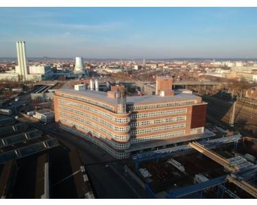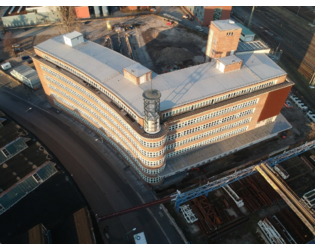 Der seit 1978 unter Denkmalschutz stehende Stahlskelettbau wurde mit rotem Klinker verkleidet und besteht aus zwei sechsgeschossigen Flügeln, die im stumpfen Winkel zueinander geordnet sind.