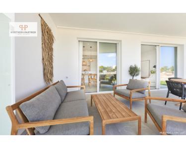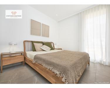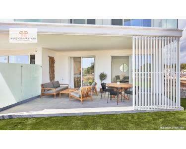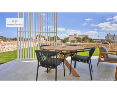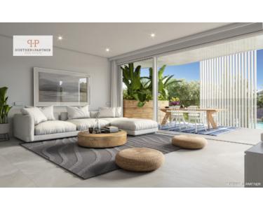 Die Erdgeschosswohnungen verfügen über großzügige, überdachte Terrassen und einen eigenen Gartenabschnitt. Alle anderen Apartments haben ebenfalls große Terrassen mit schönem Blick auf den Sporthafen von Cala D´Or und die Gemeinschafts-Außenanlagen. Die Penthouse-Apartments verfügen außerdem über eine eigene Dachterrasse mit Vorinstallation für einen Pool.