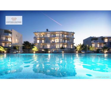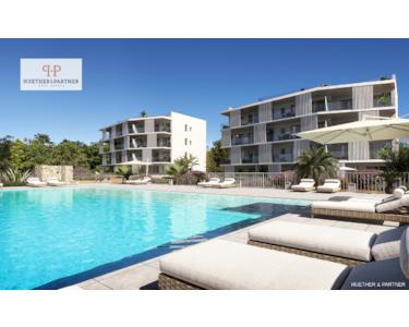 Die Apartments sind von weitläufigen Gartenanlagen mit Gemeinschaftspool umgeben, ideal, um das wunderschöne, mediterrane Klima zu genießen.