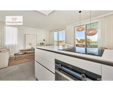 Dieses Neubauprojekt in Cala d'Or umfasst 36 Apartments. Das Design zeichnet sich durch einen avantgardistischen Baustil aus, die Bauelemente sind überwiegend in Weiß gehalten.
