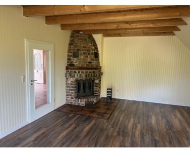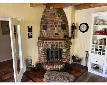 - gemauerter Kamin im Wohnzimmer aus ehemaligen Klostermauersteinen