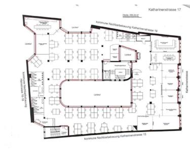Die angebotene Mietfläche im 3. Obergeschoss über ca. 1.084 m² ist teilklimatisiert und verfügt über 2 Eingangsbereiche. Der Mietbereich kann nach den Raumprofil des Mieters ausgebaut und ausgestattet werden. Stellplätze können in den umliegenden Tiefgaragen/Parkhäusern genutzt werden. Der Mietpreis richtet sich nach Ausstattung, Lage im Gebäude und Vertragslaufzeit und liegt zwischen 14,00 EUR/ m² und 18,00 EUR/ m².