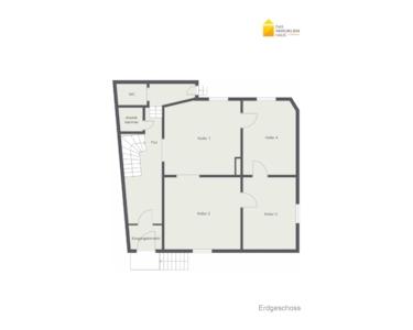 Erdgeschoss: Eingangsbereich, Flur, WC, 4 Kellerräume, Abstellkammer
