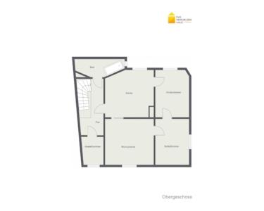 Obergeschoss: Flur, Küche, Wohnzimmer, Schlafzimmer, Kinderzimmer, Bad, Abstellkammer