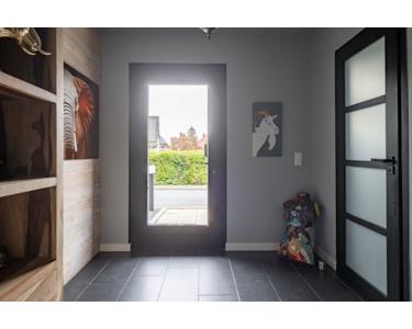 Durch die Haustür gelangen Sie in die helle Diele, die Zugang zum großzügigen Wohnzimmer und zu den Schlafzimmern bietet. Das Wohnzimmer verfügt über eine offene Küche, die für eine angenehme Interaktion mit Ihren Gästen sorgt. Ein stilvoller Design-Kaminofen bietet zusätzliche Wärme im Wohnzimmer. Dank der großen Fensterflächen ist der Raum lichtdurchflutet. Der Wintergarten, der das Wohnzimmer erweitert, ist ideal, um das ganze Jahr über den Garten zu genießen – im Winter vollständig verschließbar, im Sommer angenehm offen.