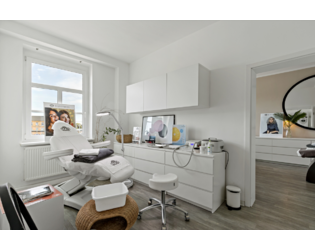 Aufgeteilt in drei Räume, bietet die Praxis optimale Bedingungen für den Betrieb eines Kosmetikstudios. Folgende Dienstleistungen werden zur Zeit angeboten: Permanent Make Up, Kosmetik, Micro Needling, Fußpflege, Nagelmodellage und Wimpernlifting. Der großzügige Empfangsbereich schafft eine angenehme Atmosphäre für Ihre Patienten, während die zwei Behandlungsräume ideal für Ihre verbundenen Anwendungen genutzt werden können. Zusätzlich steht ein Abstellraum zur Verfügung, der als praktischer Stauraum dient.