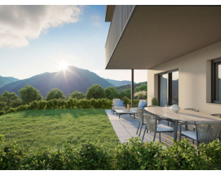 mit angrenzendem Spielplatz, großzügiger Sonnenterrasse, ausreichend Fahrrad-Parkflächen, großem ebenerdigen Stauraum und Magazin im Untergeschoß