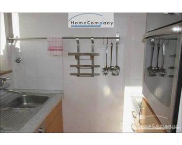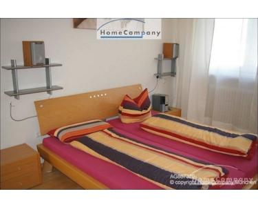 Elegante, möblierte 2-Zimmer-Wohnung (Typ Hülsta NOW) mit Balkon, Schwanthalerhöhe. 2. Stock mit Lift. Helles, modern möbliertes Wohnzimmer mit weißem Ecksofa, großem Tisch, Anbauwand mit Glasvitrine und Sideboard. Technische Ausstattung: Stereo-TV, DVD mit CD, CDRW, MP3 und Designer-Audiosystem. Schlafzimmer mit Queen-Size-Bett (1,40 x 2 m) mit Naturkautschukmatratze (Allergiker geeignet) und Kleiderschrank. Einbauküche mit Fenster, ausgestattet mit Elektroherd und Backofen, Spülmaschine, Mikrowelle und großem Kühlschrank. Das Bad verfügt über eine Badewanne mit Glasduschkabine. Bodenbelag: heller Parkettboden.