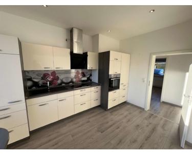 - Küche und Essbereich: Die offene Küche wurde mit einer funktionalen und ästhetischen Einbauküche ausgestattet, inklusive hochwertiger Geräte wie Herd, Backofen und Kühlschrank. Der angrenzende Essbereich ist großzügig gestaltet und bietet über eine Terrassentür direkten Zugang zum Garten, was ein ideales Wohngefühl für Familien oder Paare schafft.