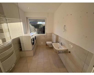 - Badezimmer: Ebenfalls vollständig renoviert, mit stilvollen, hellen Fliesen. Neben einer ebenerdigen Dusche mit Glasabtrennung gibt es auch eine erhöhte Plattform mit Waschmaschine und Trockner – eine durchdachte Lösung für zusätzlichen Komfort.