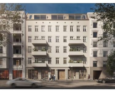 Das 5-geschossige Wohn- und Geschäftshaus aus dem Jahr 1896 präsentiert sich in einem renovierten Zustand. Ein neuer Anstrich der Fassade und des Treppen-hauses sorgt für eine weitere Aufwertung des Altbaus. Auch die 8 zum Verkauf stehenden 3- bis 5-Zimmer-Wohnungen mit Wohnflächen von ca. 74 m² bis ca. 190 m² befinden sich in Zuständen, die von unrenoviert bis saniert