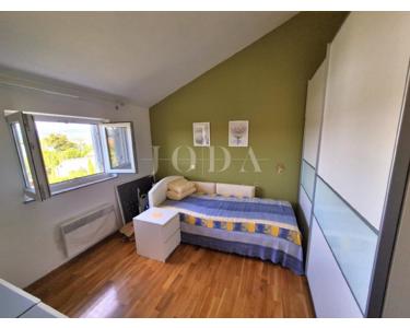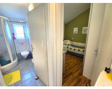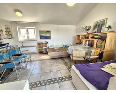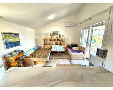 Die Wohnung befindet sich im zweiten Stock und verfügt über eine hervorragende Raumaufteilung. Es besteht aus einem offenen Wohnzimmer mit Küche, einem Badezimmer, einem Schlafzimmer und einer Loggia mit freiem Blick auf das Meer. Die Wohnung verfügt über eine Lagerfläche von 5,5 m2 im Keller des Gebäudes. Es wird möbliert und gebrauchsfertig verkauft.