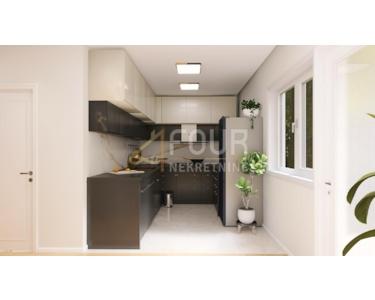 Diese Etage hat einen separaten Eingang und besteht aus drei Schlafzimmern, einer Küche mit Esszimmer und Wohnzimmer, zwei Bädern, einem Flur und zwei Balkonen.