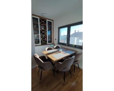 Neues kleineres Wohnhaus mit insgesamt 5 Wohnungen. Das modern aussehende Wohngebäude besteht aus vier Etagen: Erdgeschoss + 1. OG + 2. OG + Dachgeschoss. Das Gebäude wurde mit hochwertigen Materialien gebaut und nach modernsten Baustandards ausgestattet: Styroporfassade, Außenschreinerei aus ALU, elektrische Rollos und Moskitonetze, alle Etagen der Wohnung liegen auf einer Ebene und sind mit hochwertiger Keramik und echtem Parkett ausgelegt neutraler Farbton, Innentüren aus Holz, jedes Zimmer verfügt über eine eigene Klimaanlage, moderne Sanitäranlagen in den Badezimmern, Heizung und Waschmaschine im Badezimmer, Sicherheitseingangstür, voll ausgestattete Küche, Glaszaun auf den Balkonen, Terrasse im Wohnzimmer Das Wohnzimmer verfügt über eine neue ausziehbare Markise, die Wohnung ist mit hochwertigen und modernen maßgefertigten Möbeln ausgestattet. Die Wohnung verfügt über einen eigenen Zähler für Wasser und Strom.
