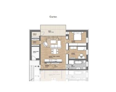 Durch die offene Raumkonzeption mit anliegenden ca. 8 m² großen Balkon hat man viel Tageslicht und helle Räume mit tollem Blick in den Garten.