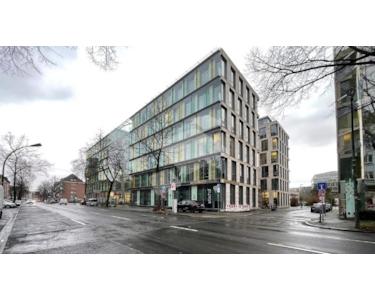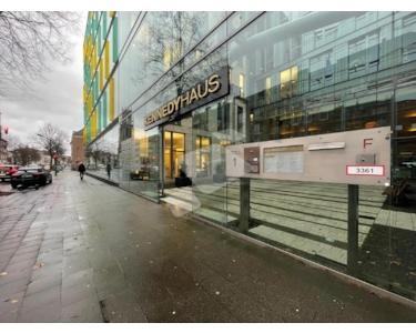 Das Kennedy Haus wurde 2004 fertig gestellt und erhielt im Jahr 2005 für seine beeindruckende Bauweise den Deutschen Architekturpreis. Das Objekt mit ca. 12.000 m² Bürofläche besteht aus vier markanten Häusern, die sich im Wechsel mit den Innenhöfen um einen zentralen Mitteltrakt reihen, der zugleich alle Einheiten verbindet. Dabei ist die Gesamtstruktur höchst flexibel: Jedes der 6 Vollgeschosse und 2 Staffelgeschosse kann in sich separiert oder als ganzes Haus zusammengefasst werden. Die straßenseitigen Höfe und die Fassade des Gebäudes werden von einer durchgehenden, Lärm abschirmenden Glaswand eingefasst. Die zahlreichen Glasfronten sorgen nicht nur für helle, Licht durchflutete Büroräume und somit ein angenehmes Arbeitsklima, sondern sie lassen auch die großzügige Eingangshalle und den repräsentativen Empfangsbereich im Tageslicht erstrahlen.