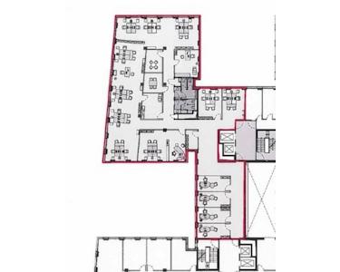 - Büroraumkühlung durch in der Decke verlegte, nicht sichtbare Kühlelemente, unterstützende Be- und Entlüftung und Fensterlüftung in allen Büros möglich
