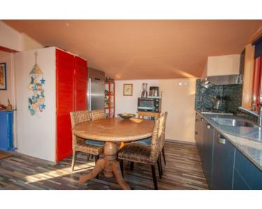 Die große Küche ist mit Einbaugeräten hochwertiger Marken und einer über 4 Meter langen Naturstein-Arbeitsplatte ausgestattet.