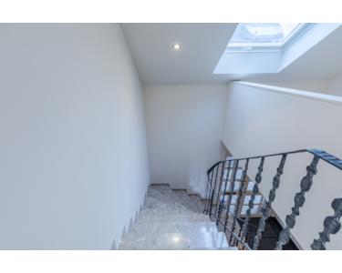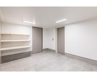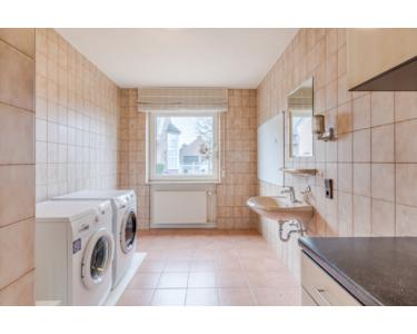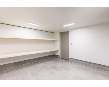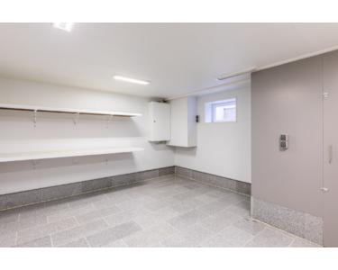 Das Kellergeschoss umfasst zwei große Räume, einen Flur sowie den Technikraum mit Pelletheizung, Siloraum und Solarboiler. Alle Räume sind mit Granitfliesen ausgestattet (außer der Technikraum).