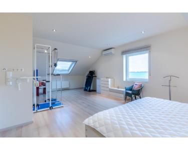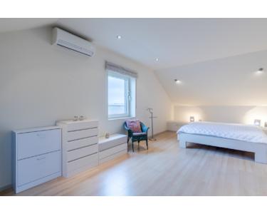 Drittes Schlafzimmer mit Laminatboden, Klimaanlage und Tageslicht von zwei Seiten.