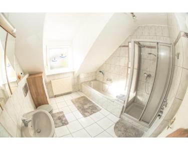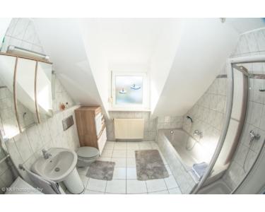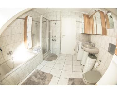 Im großzügige Bad mit Wanne hat zusätzlich eine Fußbodenheizung. Anschlüsse für die Waschmaschine und Trockner sind vorhanden.