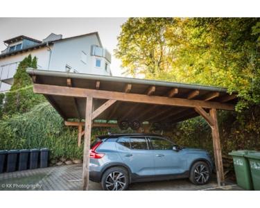 Der Stellplatz für ein Kfz mit einem geräumigen-, großen Carport bietet Platz für Fahrräder und Winterreifen und verfügt über einen Gemeinschafts-Elektroanschluss. Zudem gibt es die Möglichkeit, auf der großen Dachfläche des Carports, Solarmodule zu installieren, um umweltfreundlichen Strom für ein E-Auto zu gewinnen.