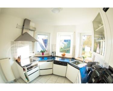 Die Wohnung ist mit einer zeitlosen Einbauküche von Allmilmö und Küppersbusch-Geräte ausgestattet.