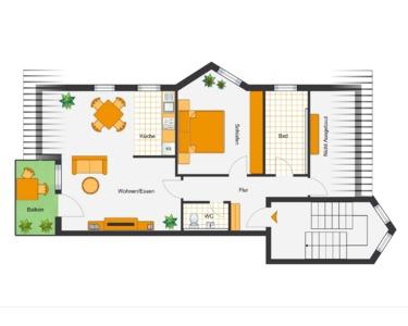Die Wohnfläche verteilt sich praktisch auf gut geschnittene Zimmer plus Balkon. Darüber hinaus verfügt die Wohnung über ein schönes Badezimmer und zusätzlichem Gäste-WC.