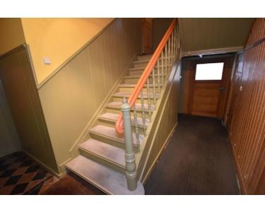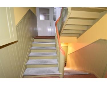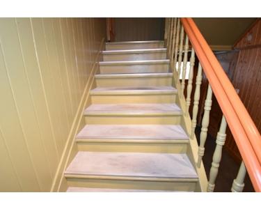 Holztreppe mit Handlauf und PVC – Rillenbelag, Sanierung inkl. Wände (2013)