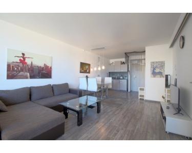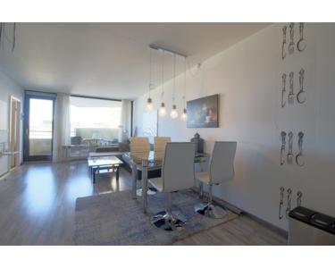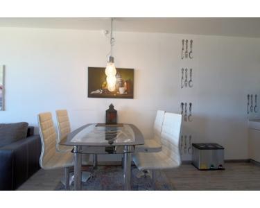 1 Wohnzimmer mit Schlafcouch und Essbereich, Flachbild-Fernseher,