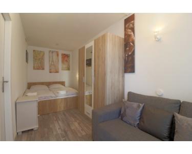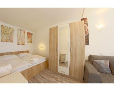 1 Schlafzimmer mit Doppelbett und Schlafcouch