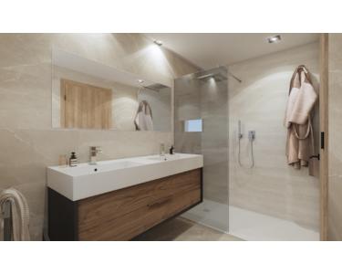 + Komplett-Bäder mit Doppelwaschtischen Dusche/Glaswand