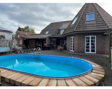 Individuelles, großzügiges Wohnhaus mit viel Wohn-/ Nutz- und Gewerbefläche. Auf dem ca. 2.500 m² großen Grundstück befinden sich ebenfalls eine Gewerbehalle mit Photovoltaikanlage, eine massive Garage, ein Carportanlage mit drei Stellplätzen und ein Außenpool.