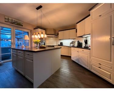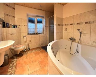 Erdgeschoss: Wohnzimmer im „Turm“, Zimmer mit Kaminofen, ein weiteres Zimmer, großzügige Wohnküche mit Einbauküche und Kochinsel, Dusch-/Wannenbad mit Whirlpool, 2 Gäste-WCs, geräumige Eingangsdiele, Hauswirtschaftsraum, Flur, Abstellraum, ein Nebenzimmer mit separatem Eingang, Heizungsraum, Büro, Windfang;