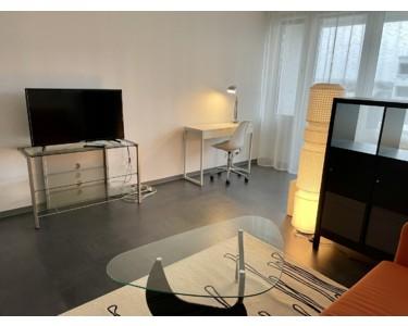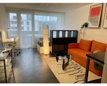 Stylische, voll ausgestattete 1-Zimmer-Wohnung mit Balkonblick auf die EZB