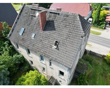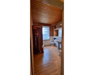 Das Wohnhaus verfügt bereits über zwei Wohnungen die mit recht überschaubarem Aufwand hergerichtet werden könnten. Die Wohnung im Dachgeschoss benötigt eine etwas höhere Investition. Im Haus wir derzeit nur der gute alte Kachelofen genutzt. Sie sehen auf den Bildern Heizkörper, die aus der Zeit des Betriebes, mit einer Gasttherme stammen. Der auf dem Grundstück stehende Gastank ist ebenfalls aus dieser Zeit, wird aber nicht mehr genutzt. Eine Gasleitung befindet sich aber inzwischen vor dem Grundstück. Warmes Wasser bekommt man elektrisch.