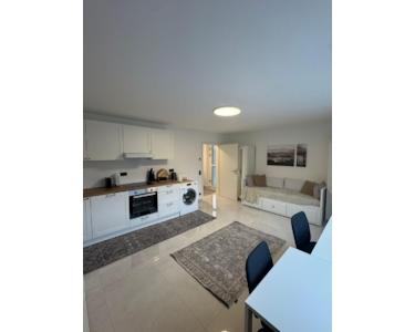 • Wohn-/Essbereich: Modern eingerichtetes Zimmer mit einem gemütlichen Tagesbett, welches auch als Doppelbett genutzt werden kann. Modernes TV-Gerät, Kleiderschränke und praktische Kommoden sowie elegante Dekor-Elemente. Neue Einbauküche mit modernen Geräten, darunter ein Kühlschrank,Induktionskochfeld,Backofen, Spül- und Waschmaschine sowie eine Nespresso Kaffeemaschine.