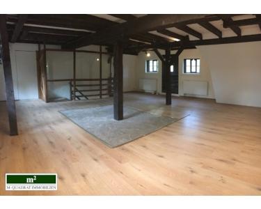 Die links im Gebäude vorhandenen Räumlichkeiten in denen historisch der Mühlenbetrieb stattfand, versprühen Fachwerkcharme und bieten zugleich Platz für moderne Arbeitsplätze oder Ladenflächen bei flexibler Raumaufteilung.