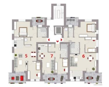 Das erste Obergeschoss, in dem sich eine 2-Zimmer Wohnung und zwei 3-Zimmer Wohnungen befinden, ist mit Wohnflächen zwischen ca. 52 m² und ca. 88 m² ausgestattet.