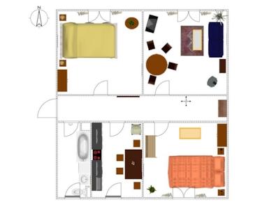 + Die 2 Schlafzimmer sind mit großen Doppelbetten (180x200 bzw. 160x200, zusätzlich umklappbare Schlafcouch im Wohnzimmer) ausgestattet.